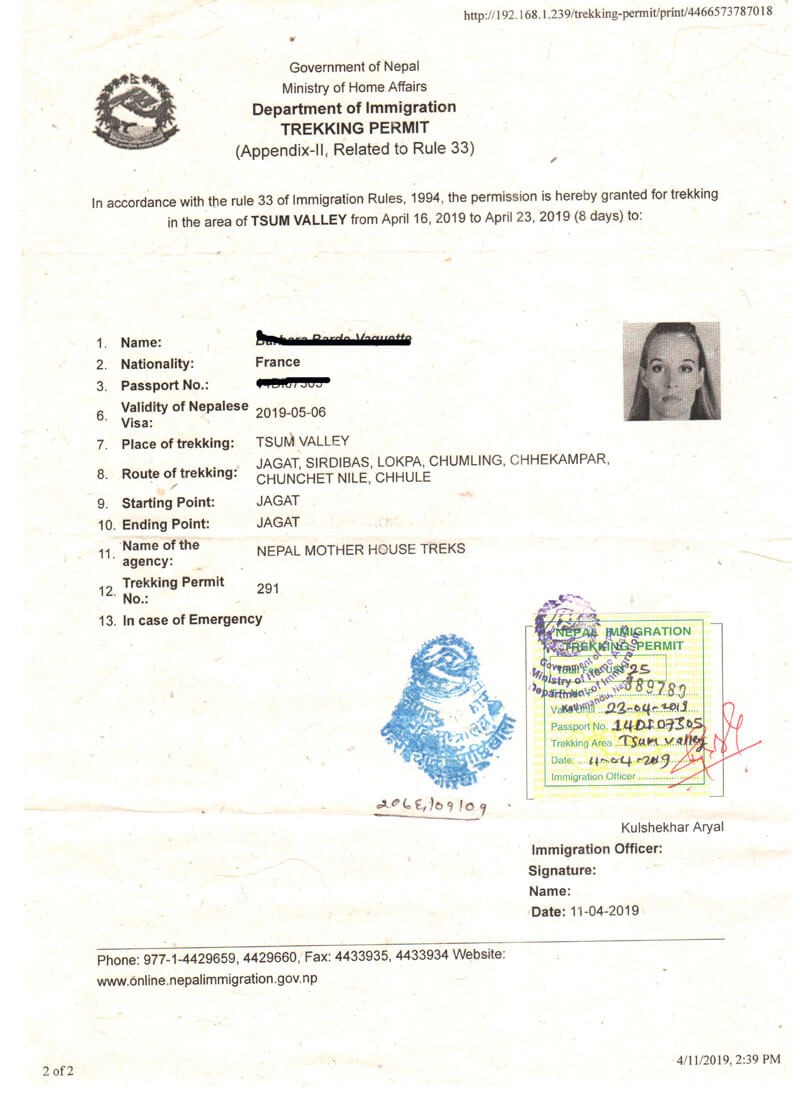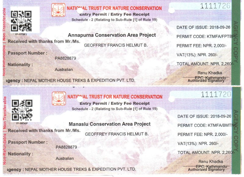 Permits for the Manaslu Circuit and Tsum Valley Trek and its costs.
